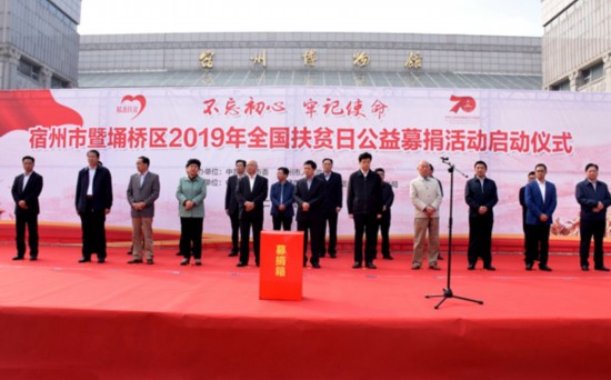 10月17日,宿州市暨埇橋區(qū)2019年全國扶貧日公益募捐活動(dòng)啟動(dòng)儀式在宿城銀河廣場隆重舉行。募捐現(xiàn)場,我市愛心企業(yè)、單位、個(gè)人踴躍捐款,用實(shí)際行動(dòng)助力脫貧攻堅(jiān)。記者 董虎 攝